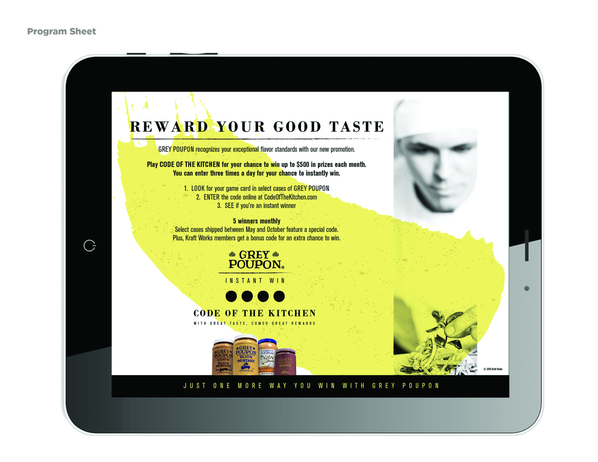 This was a fun promotion. The target was chefs and distributors. The hook, free product. But, the fun was in the double entendre of the promotion name. “Code of the Kitchen”. There’s an unwritten code between chefs and we leveraged that code for visability. The promotion was a success. And Kraft decided to keep the line alive in a soon to come consumer promotion.