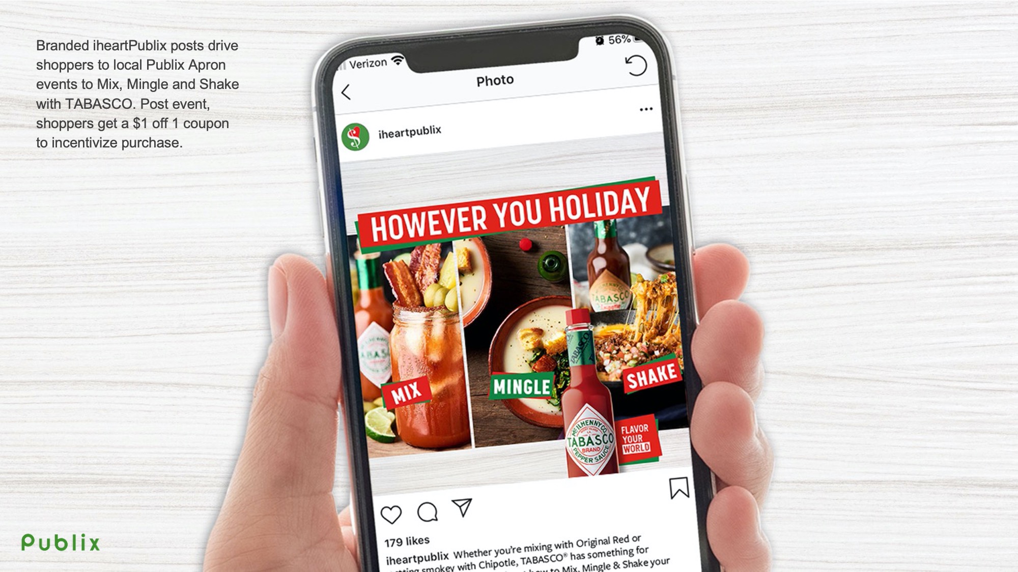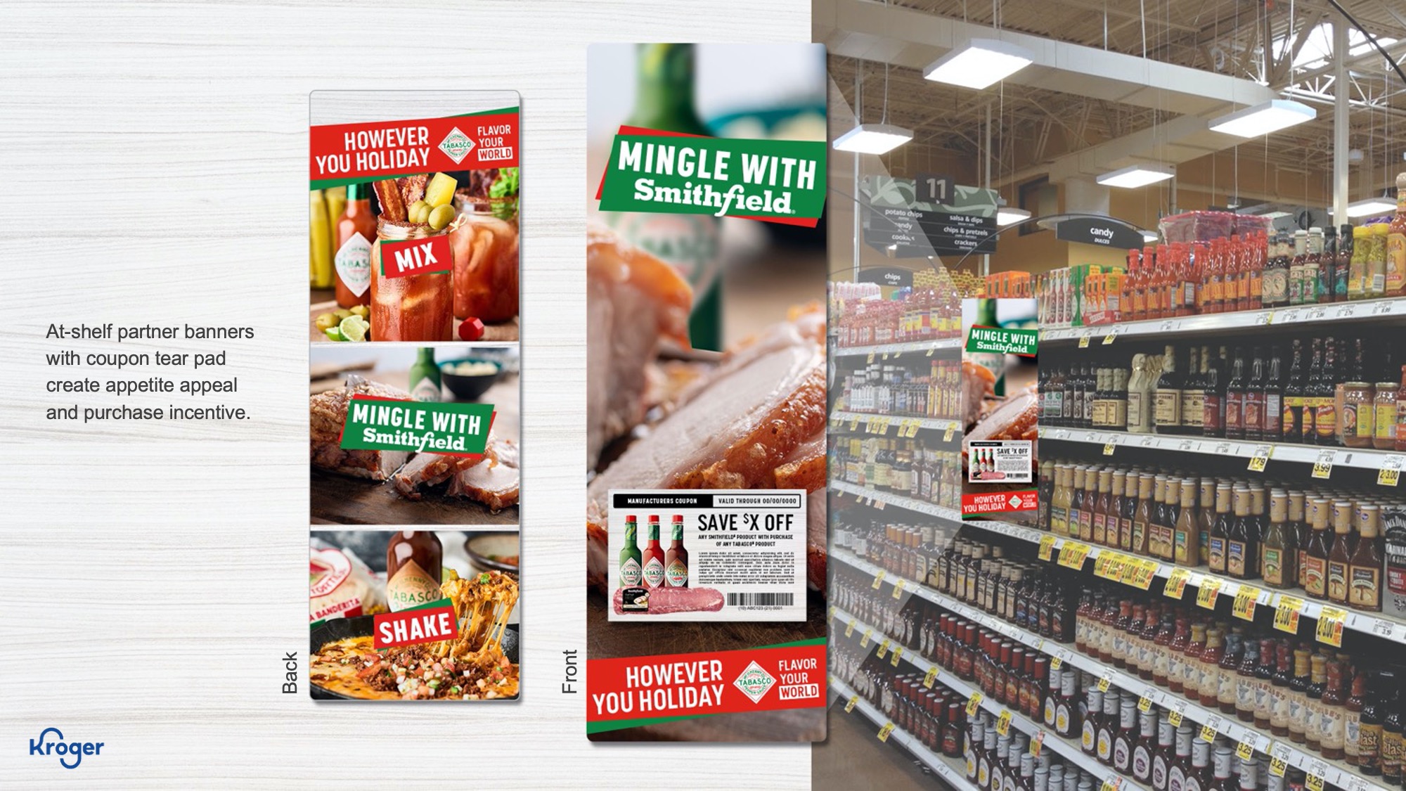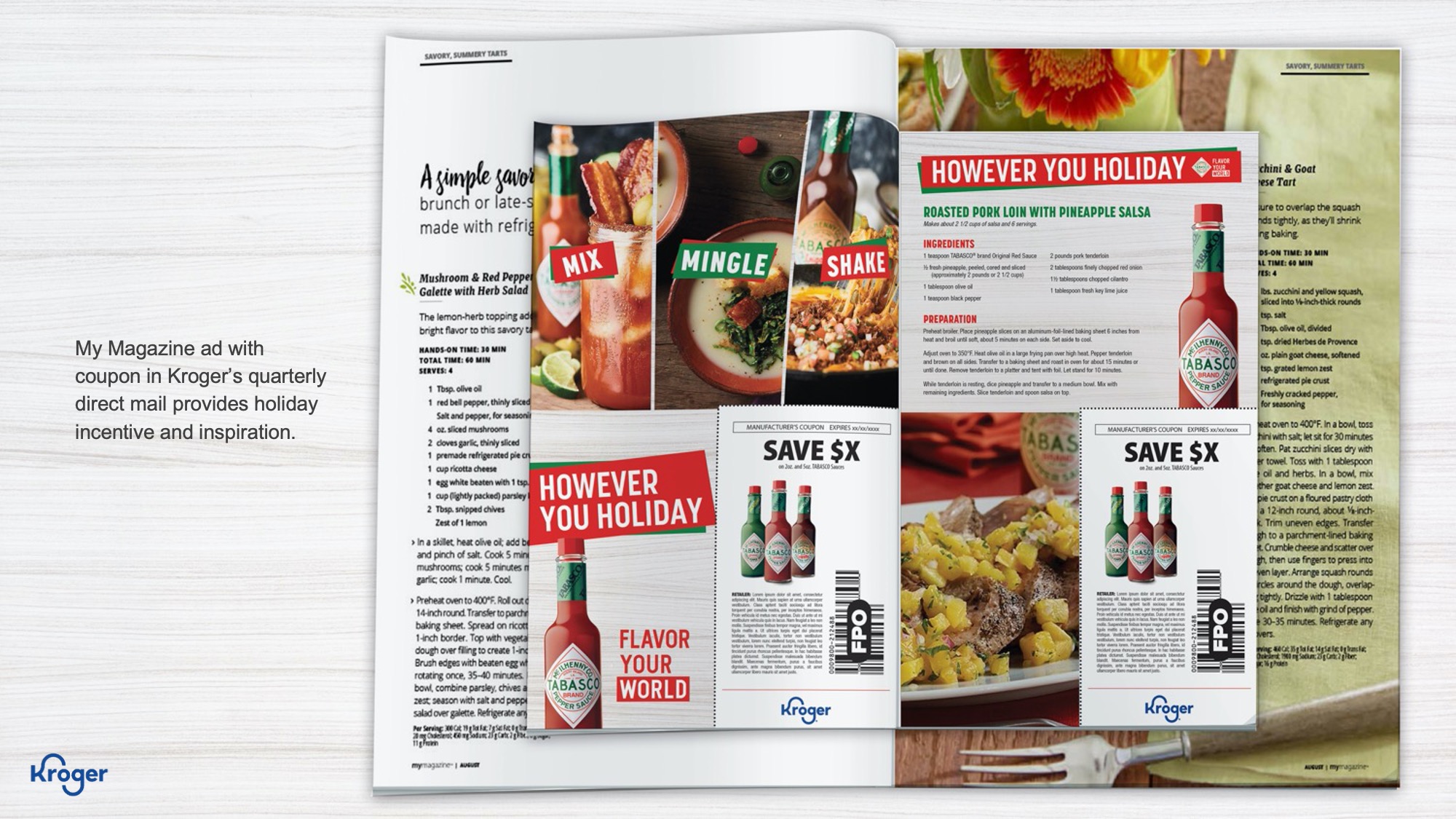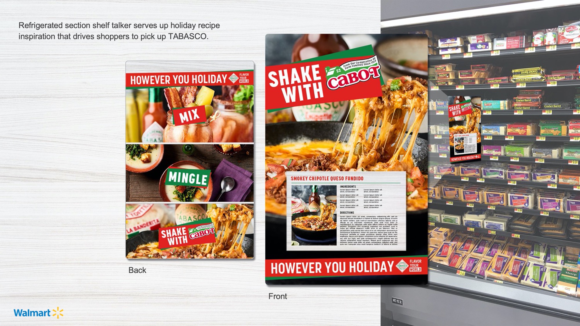 Tabasco Seasonal Program Dabbing spicy holiday cheer onto one host food at a time. Sprinkle in some national, retailer specific and partnership ideas and you have one happy client.